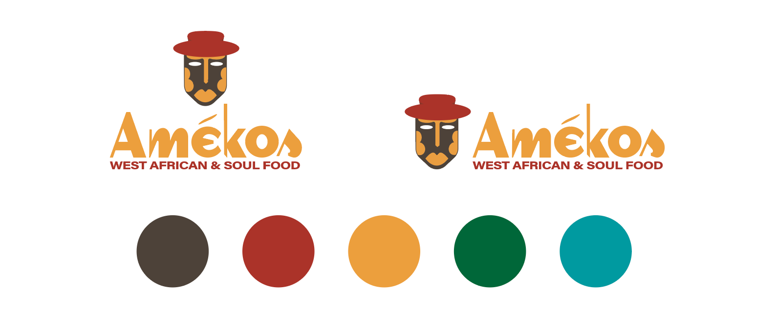 Amékos is a fusion restaurant blending the bold flavors of Soul Food and West African cuisine. This project aimed to create a brand identity that seamlessly merged two rich cultural traditions. The research phase was particularly rewarding, uncovering the differences and similarities between the two cultures and finding creative ways to bring them together.